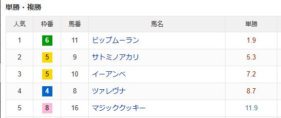 単勝オッズの1番人気が1倍台で